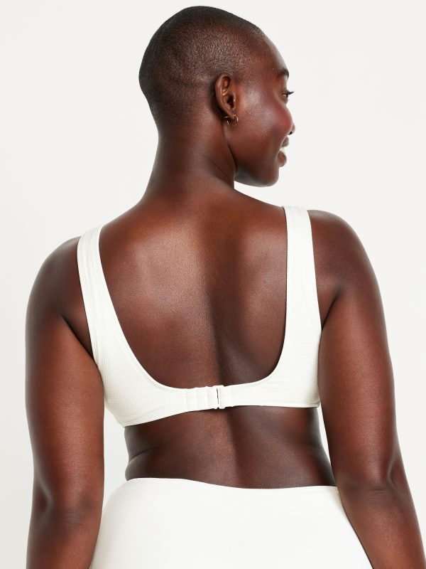 Textured Swim Top: scoop neck, wide straps, ruched front with o-ring accent, removable cups, hook-and-eye clasp at back, #660878