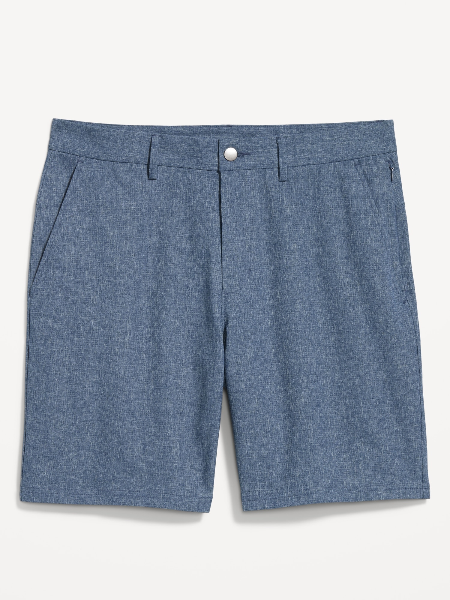 Textured Tech Chino Shorts — 8-inch inseam: Wrinkle free, with cooling tech and four-way stretch.snap front, belt loops, zip fly, front pockets, single back welt pocket, left stash pocket, #763602