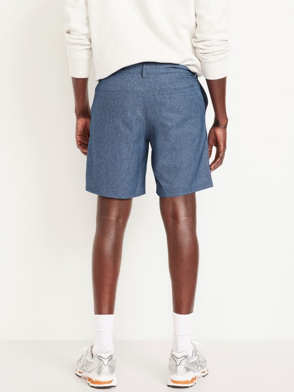 Textured Tech Chino Shorts — 8-inch inseam: Wrinkle free, with cooling tech and four-way stretch.snap front, belt loops, zip fly, front pockets, single back welt pocket, left stash pocket, #763602