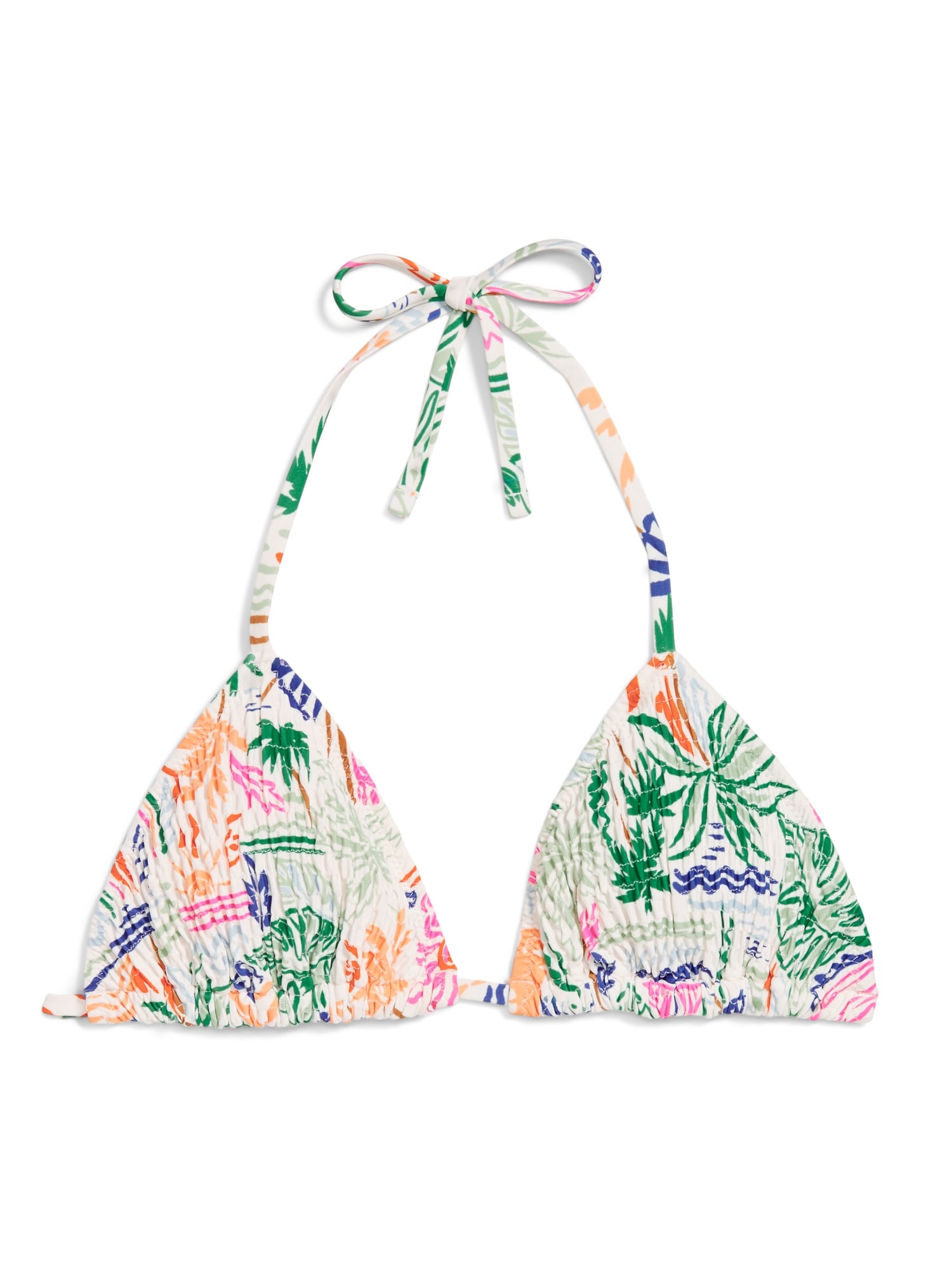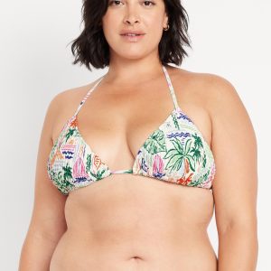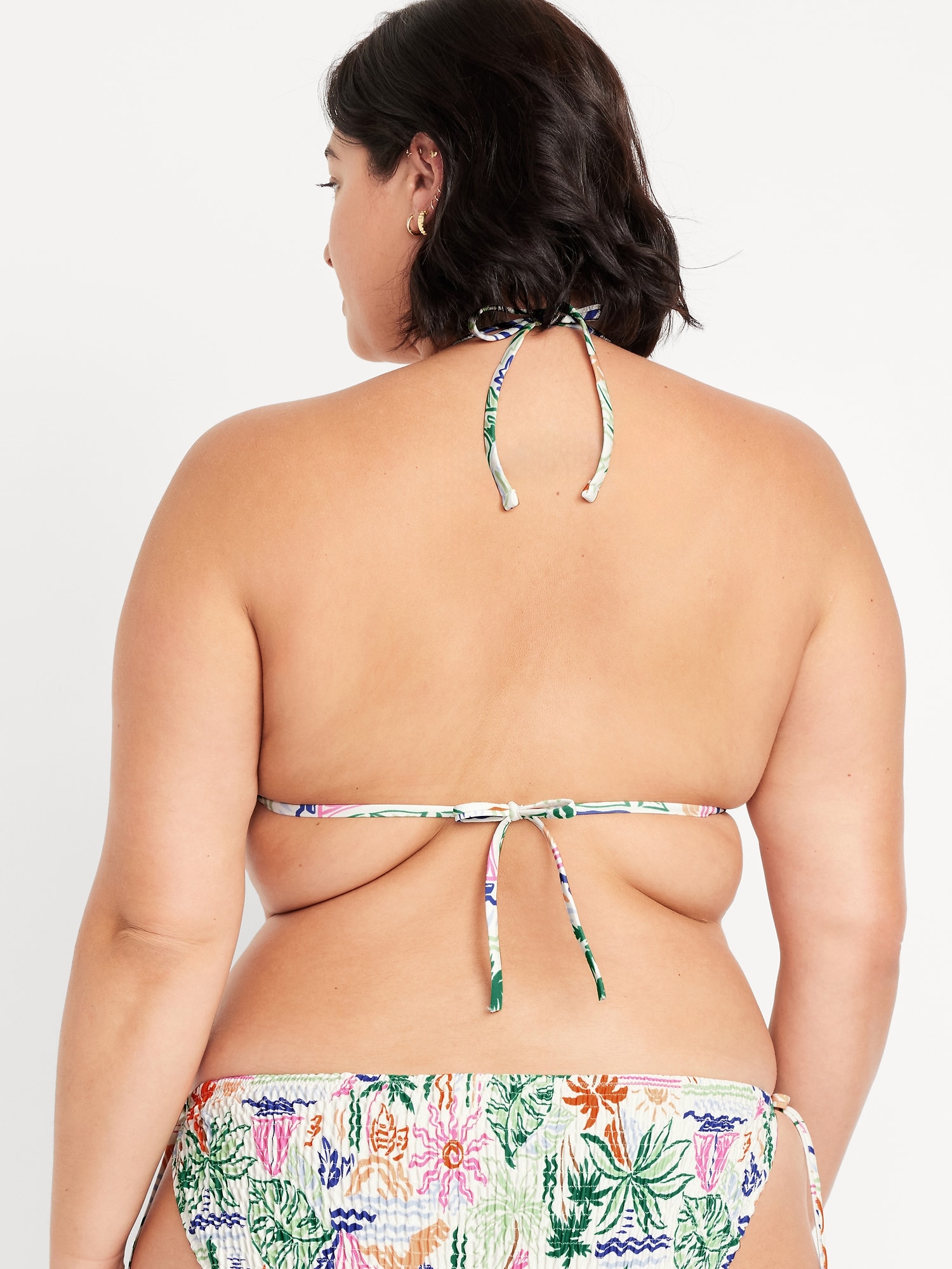 Textured Triangle String Bikini Swim Top: tie-neck halter straps, removable pads, shirred detail, #403813