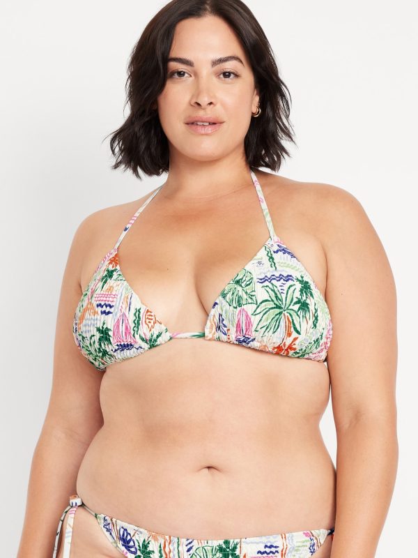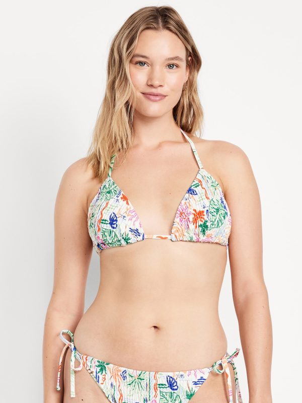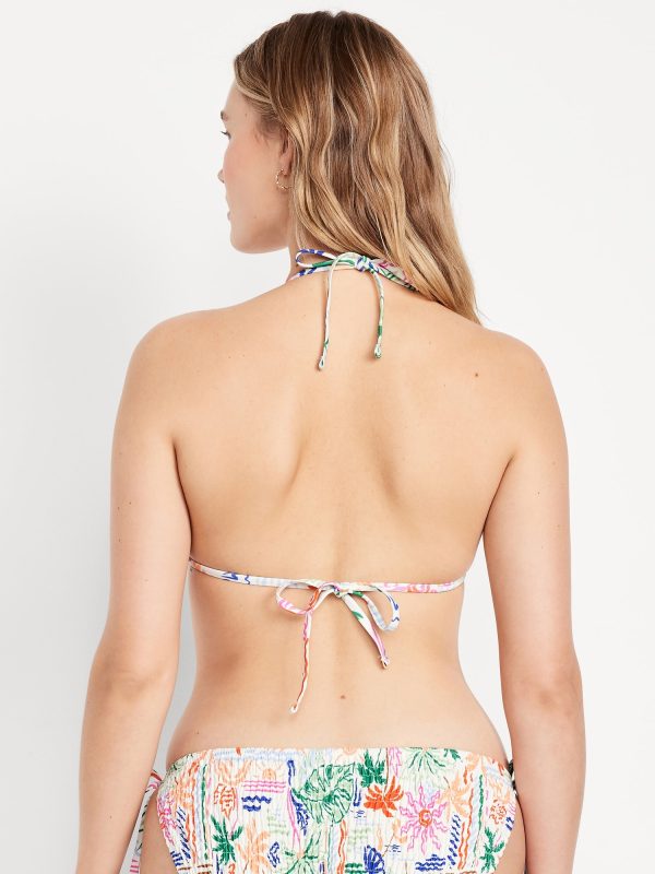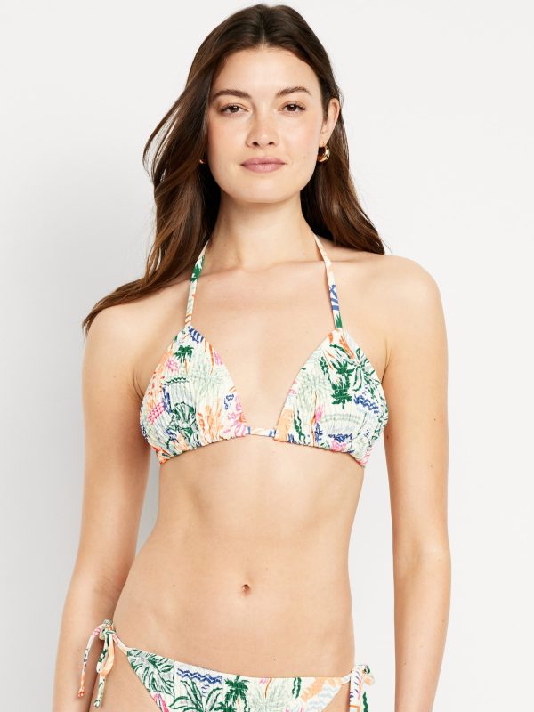 Textured Triangle String Bikini Swim Top: tie-neck halter straps, removable pads, shirred detail, #403813