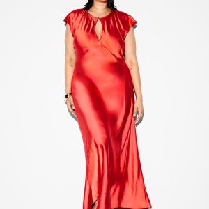 The Occasion by Old Navy Flutter-Sleeve Keyhole Satin Maxi Dress