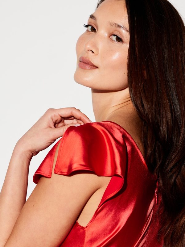 The Occasion by Old Navy Flutter-Sleeve Keyhole Satin Maxi Dress