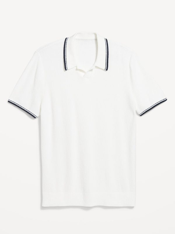 Tipped Collar Polo Sweater: spread collar, short sleeves, buttoned placket, pullover style, #802042