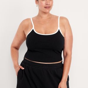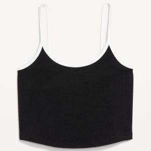Tipped Jersey Cropped Brami Top: scoop neck, spaghetti straps, tipped trim, #844564