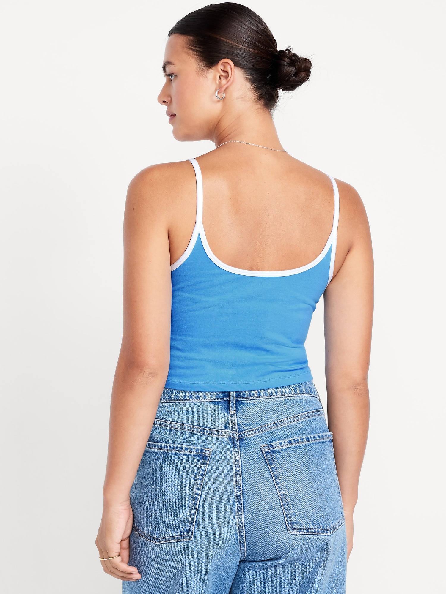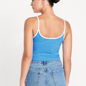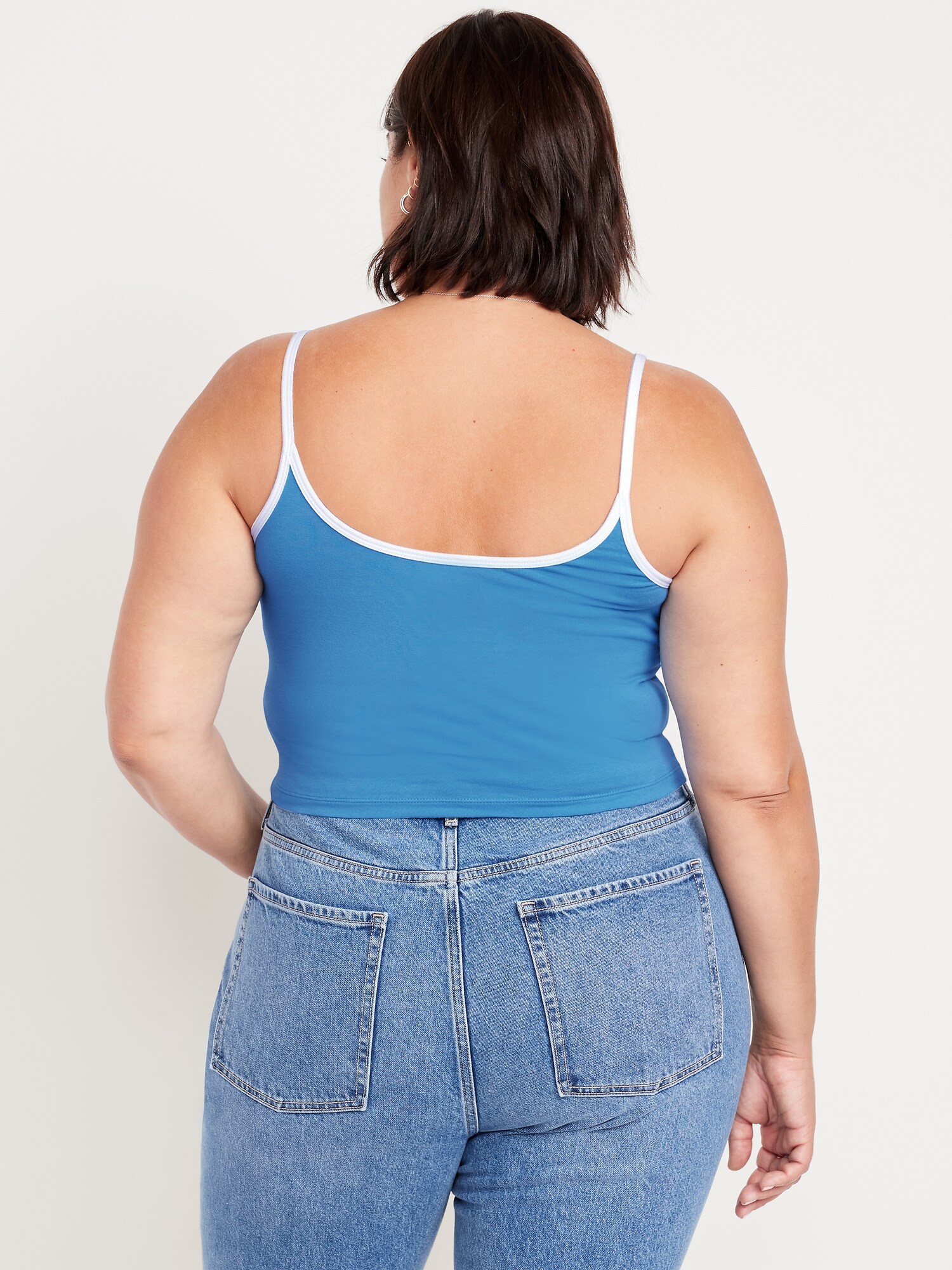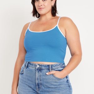 Tipped Jersey Cropped Brami Top: scoop neck, spaghetti straps, tipped trim, #844564