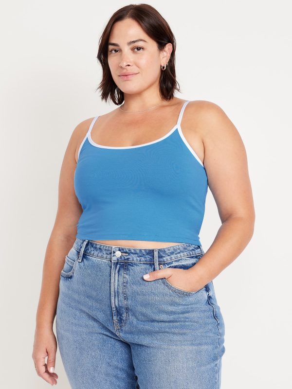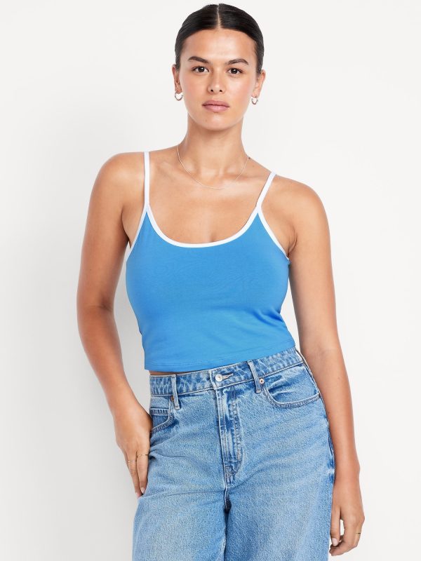Tipped Jersey Cropped Brami Top: scoop neck, spaghetti straps, tipped trim, #844564