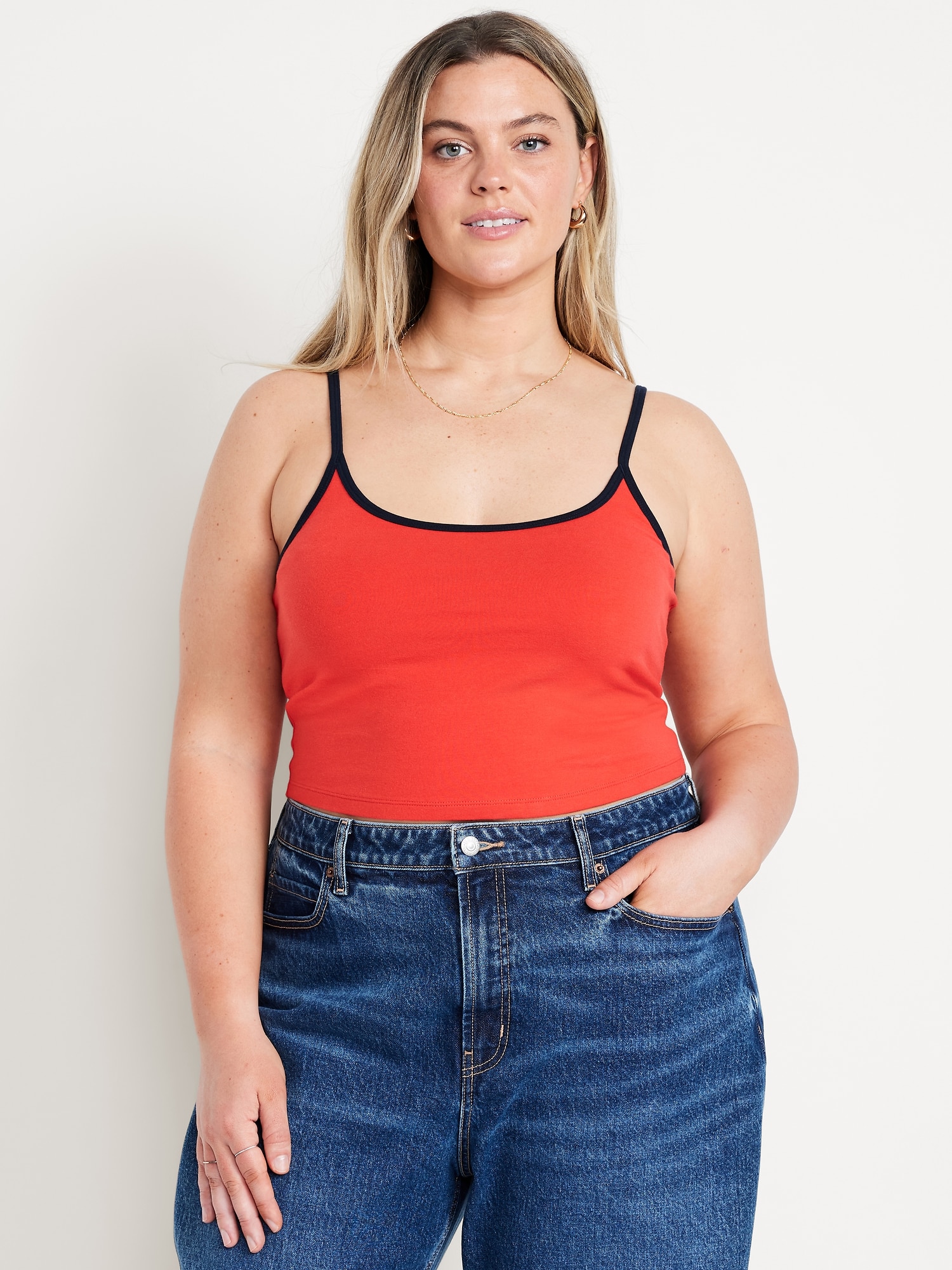 Tipped Jersey Cropped Brami Top: scoop neck, spaghetti straps, tipped trim, #844564