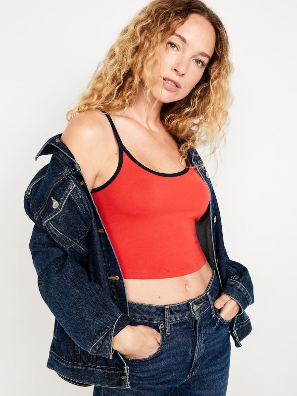 Tipped Jersey Cropped Brami Top: scoop neck, spaghetti straps, tipped trim, #844564