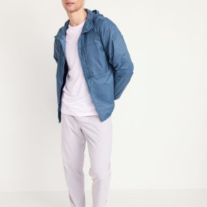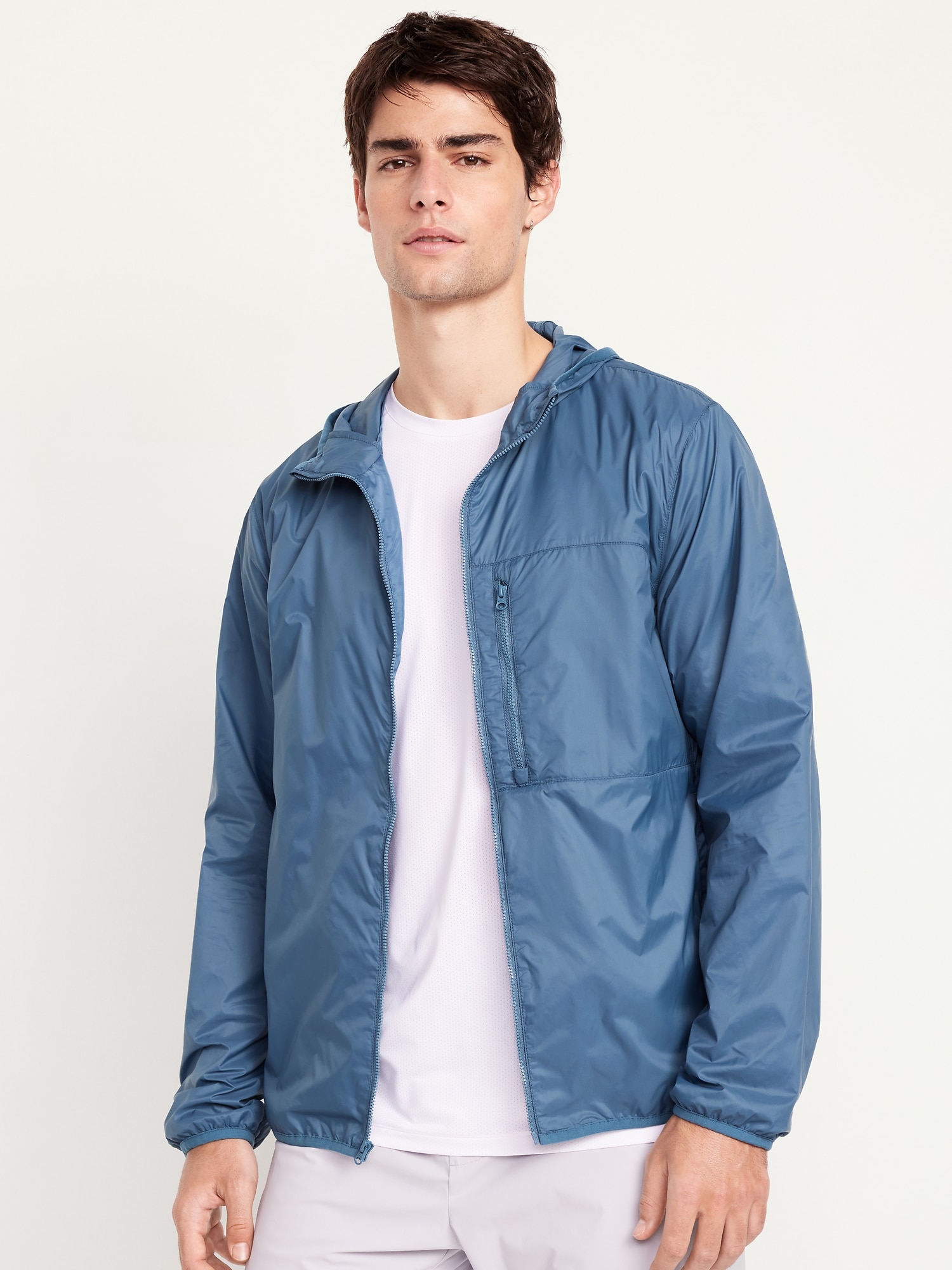 Trail Anorak Jacket: snorkel hood, long sleeves, full-zip front, zip chest pocket, on-seam front zip pockets, elastic hood, cuffs and hem, #665273