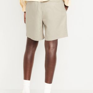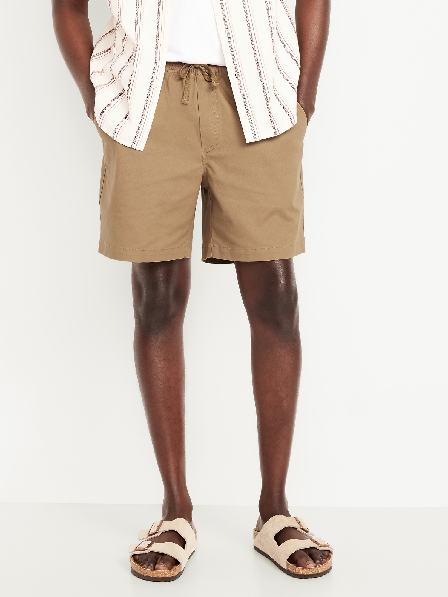 Twill Jogger Shorts — 5-inch inseam: elastic-drawstring waistband, diagonal hip pockets, back right welt pocket, pull-on style, #695507