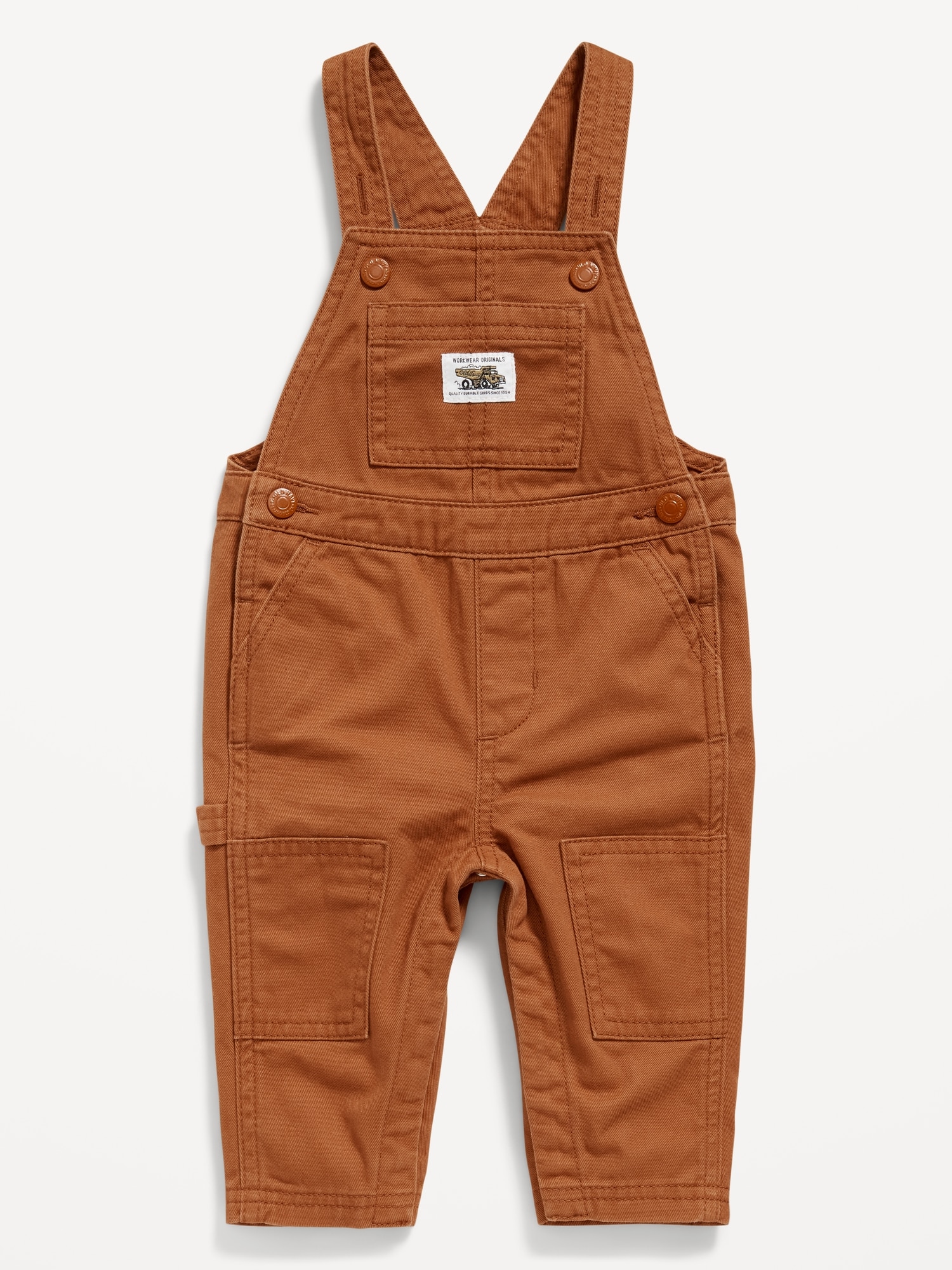 Twill Overalls for Baby: adjustable shoulder straps, patch pocket, snap-button closures at sides, diagonal pockets at front, patch pockets at back, all-over pattern in select colors, #804452
