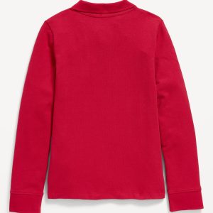 Uniform Pique Polo Shirt for Girls: Uniform Guarantee: Uniforms may be returned for a full refund with the original receipt for 365 days from the date of purchase.rib-knit collar, long sleeves, three-button placket, vented sides at hem, online exclusive, #581569