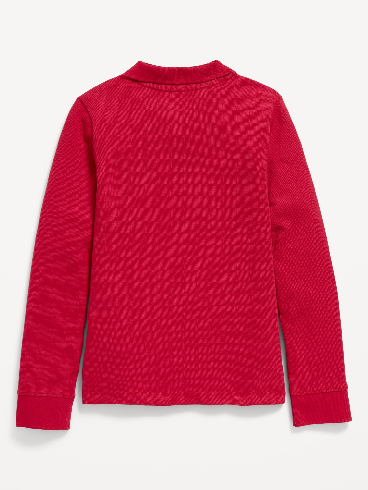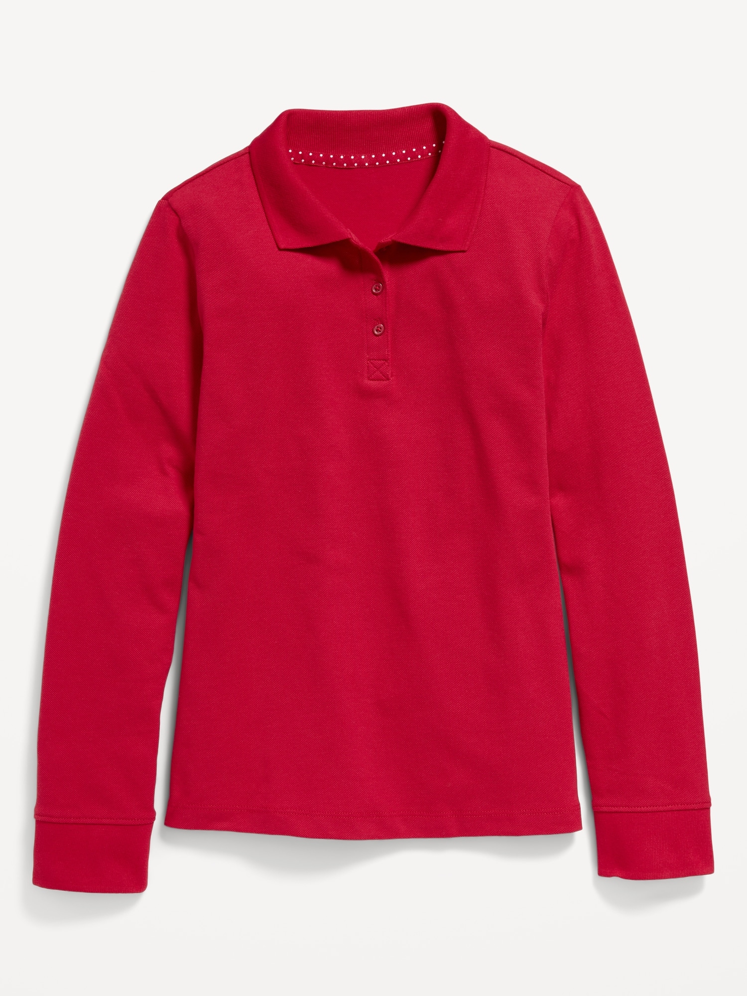 Uniform Pique Polo Shirt for Girls: Uniform Guarantee: Uniforms may be returned for a full refund with the original receipt for 365 days from the date of purchase.rib-knit collar, long sleeves, three-button placket, vented sides at hem, online exclusive, #581569