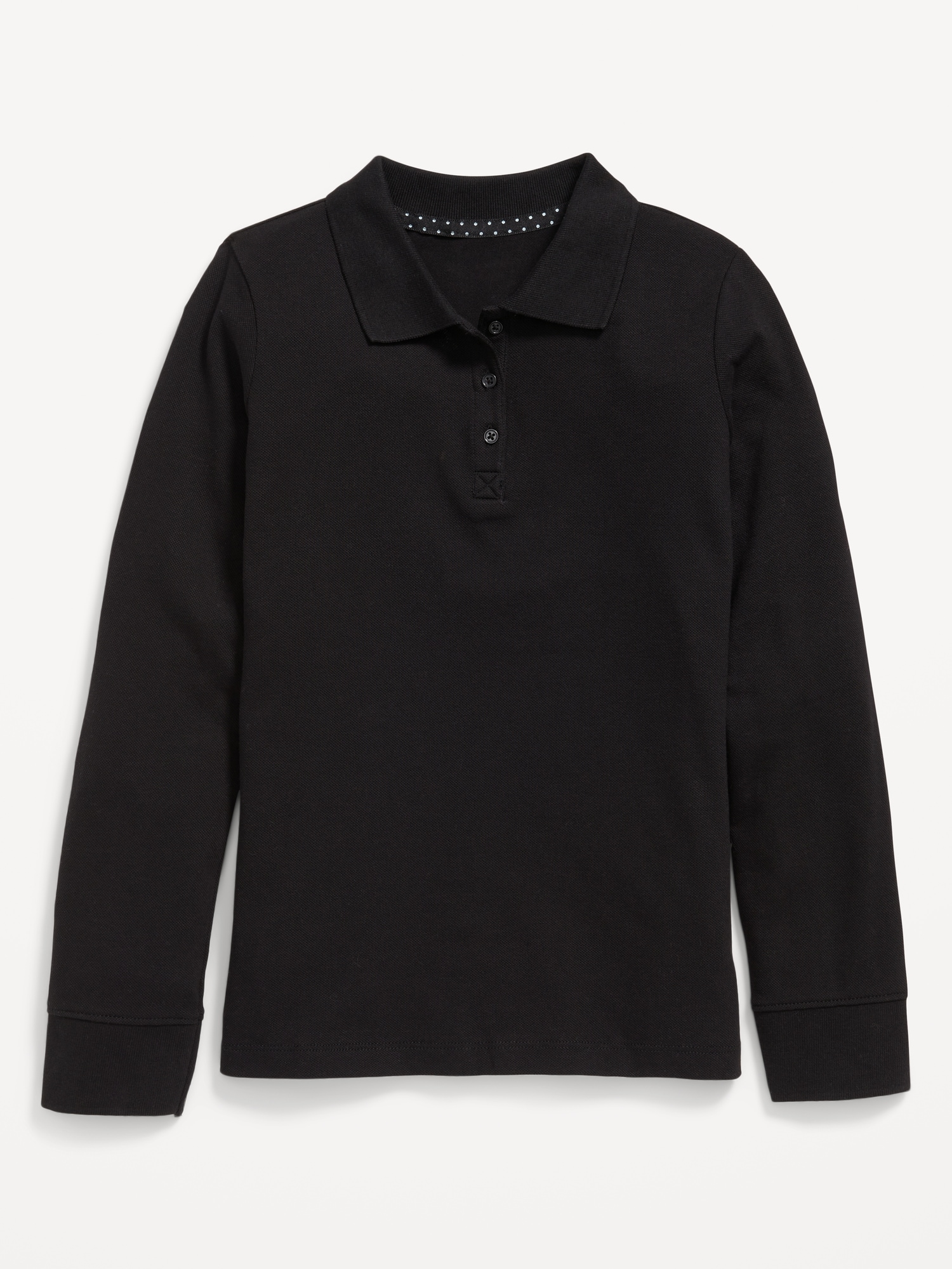 Uniform Pique Polo Shirt for Girls: Uniform Guarantee: Uniforms may be returned for a full refund with the original receipt for 365 days from the date of purchase.rib-knit collar, long sleeves, three-button placket, vented sides at hem, online exclusive, #581569