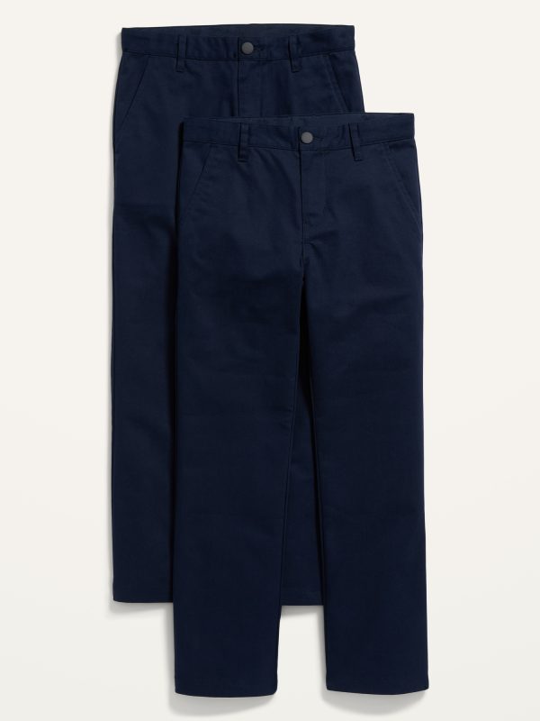 Uniform Straight Leg Pants for Boys 2-Pack: Uniform Guarantee: Uniforms may be returned for a full refund with the original receipt for 365 days from the date of purchase.pack includes 2 pairs of uniform straight-fit chino pants, interior adjustable waistband, hook-and-bar closure in sizes 5-8, regular button keyhole closure in sizes 10-20, zip fly, flat front, diagonal on-seam pockets, welt pocket at back right, reinforced knees for added durability, #875595