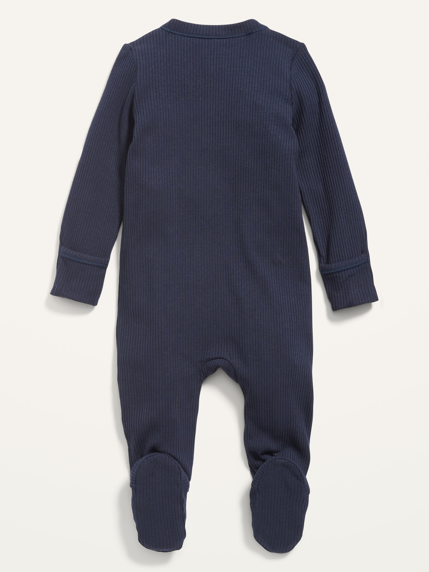 Unisex 2-Way-Zip Sleep & Play Rib-Knit Footed One-Piece for Baby: crew neck, long sleeves, full-length reversible zipper, fold-over mittens at each sleeve, sewn-in feet, #804884