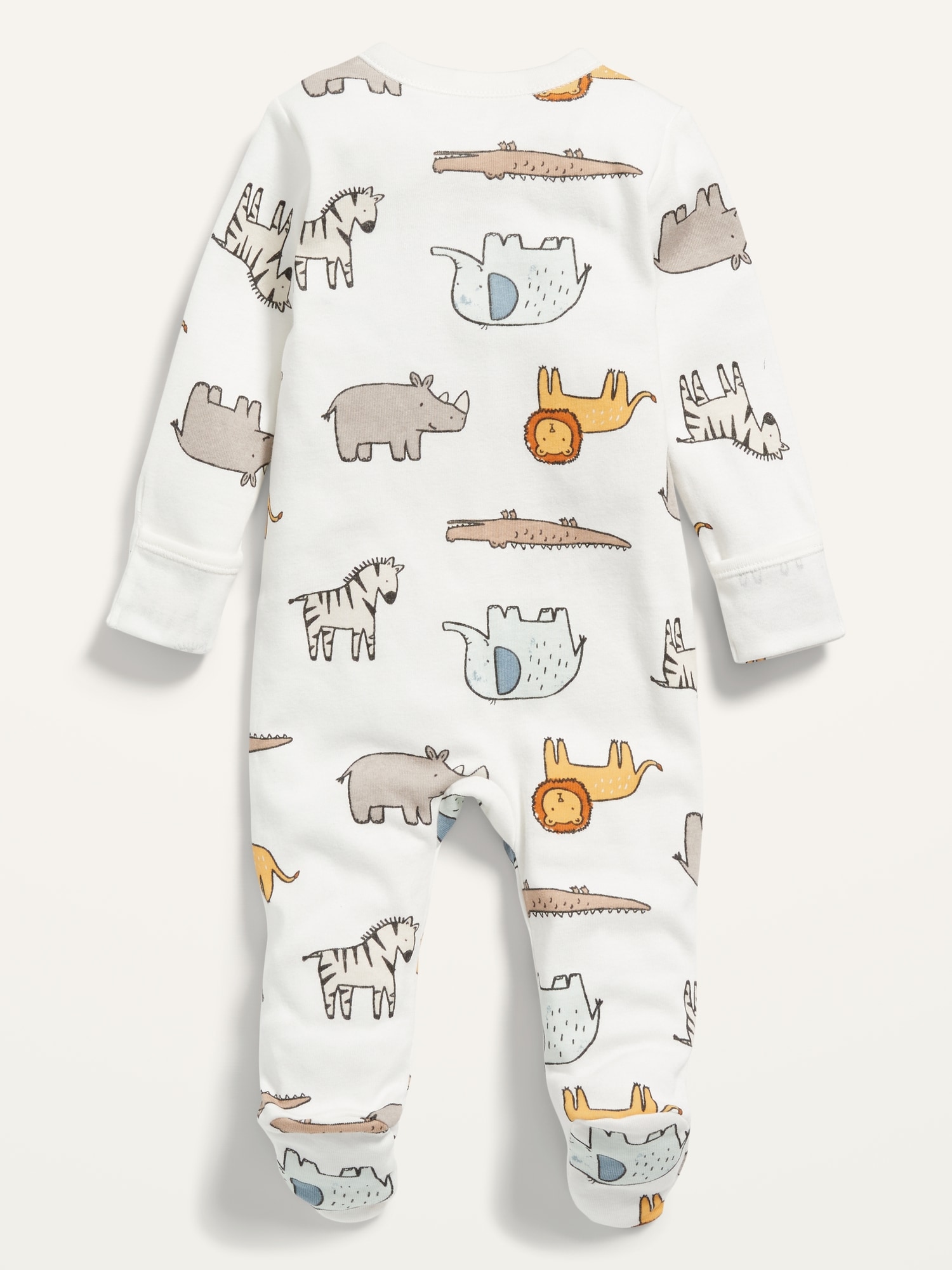 Unisex Animal-Print 2-Way-Zip Sleep & Play Footed One-Piece for Baby: This footed one-piece is totally adorable & unisex, too. Wearable & shareable for baby girl and baby boy!, Rib-knit crew neck., Long sleeves., Fold-over mittens at each sleeve flip over to keep baby’s hands warm and protect tender skin from scratches. Genius!, Reversible two-way zipper unzips from the bottom for quick diaper access. Baby changing just got so much easier (and warmer)., Sewn-in feet., Soft-washed 100% cotton knit., #878064