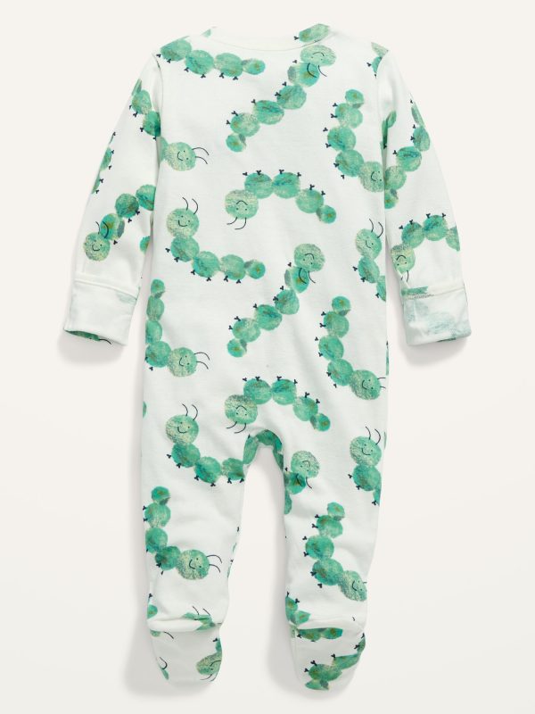 Unisex Caterpillar Print Sleep & Play 2-Way Zip Footed One-Piece for Baby