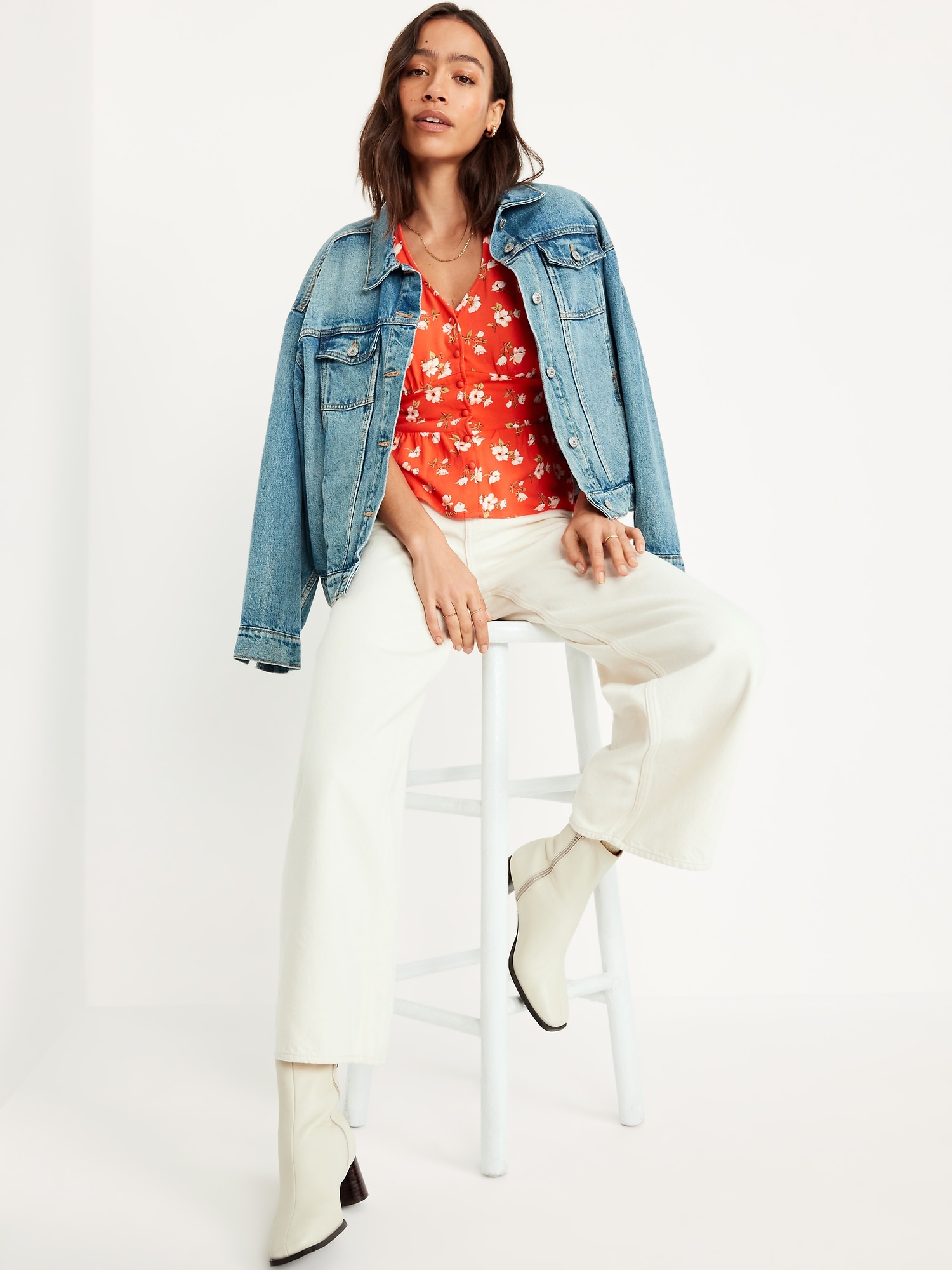 V-Neck Button-Down Crepe Top