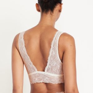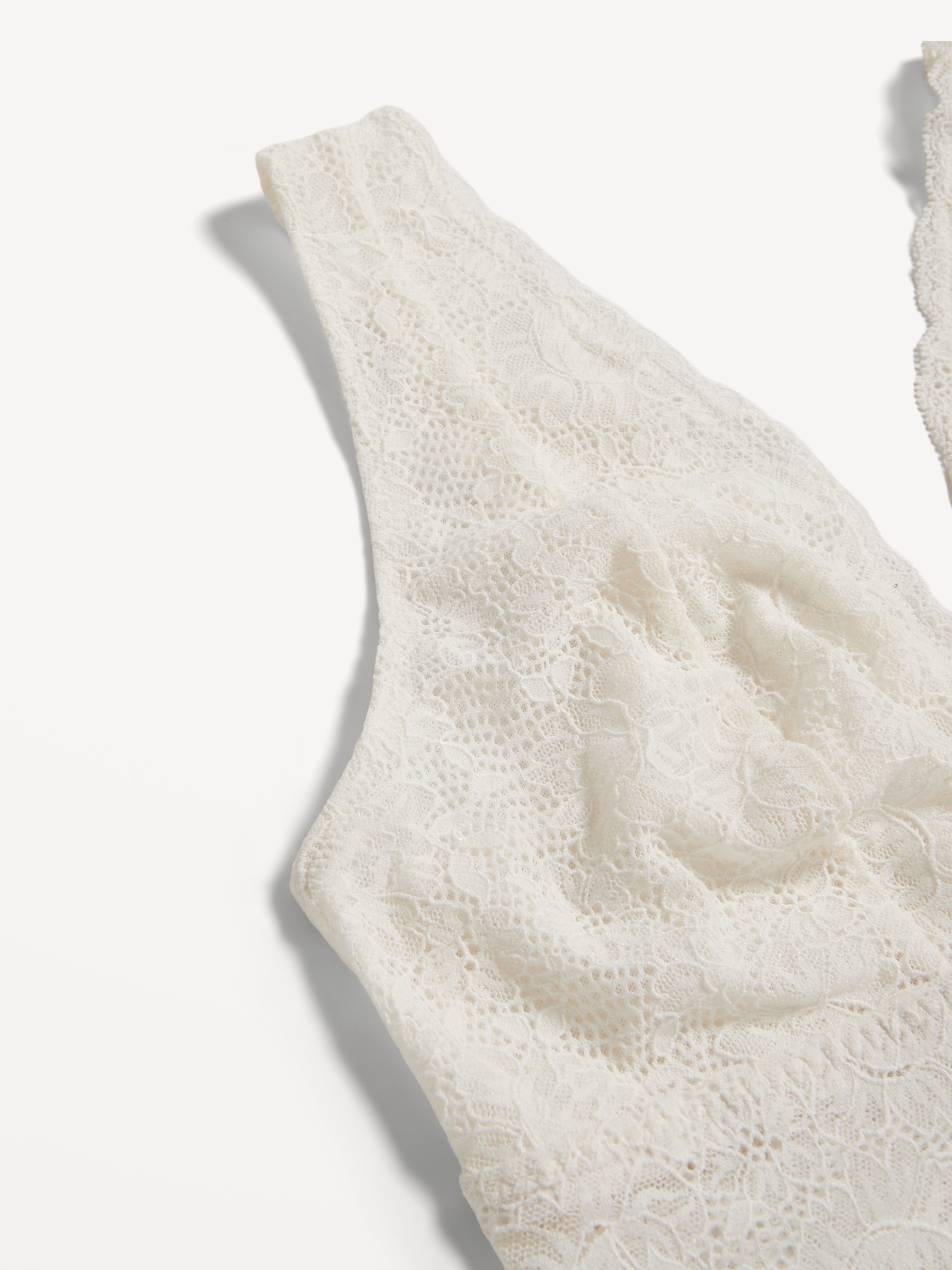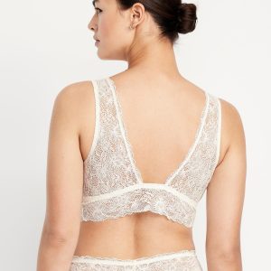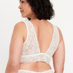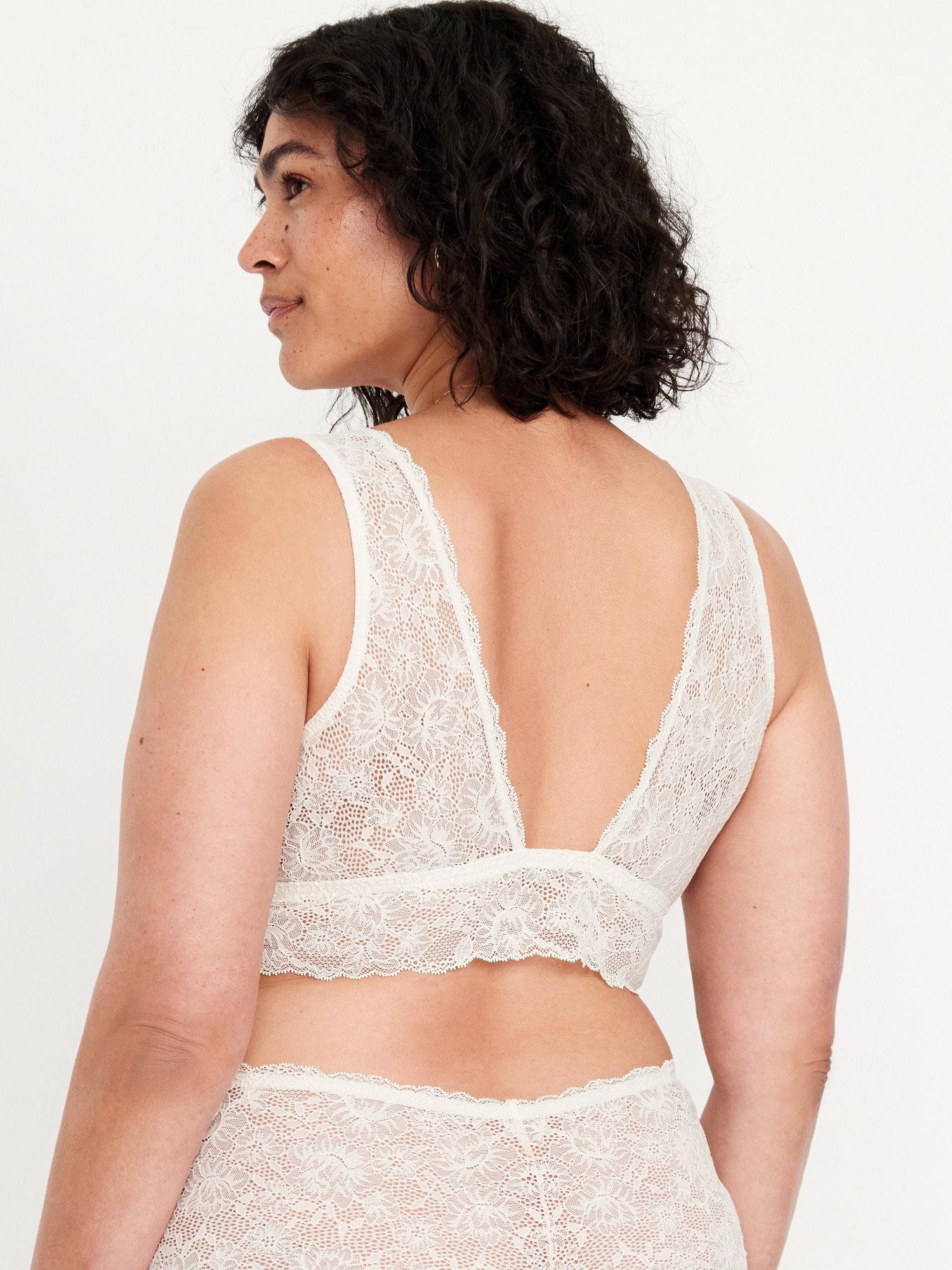 V-Neck Lace Bralette: plunging v-neck, wide straps, front mesh lining, elastic neckline and hem, #800563