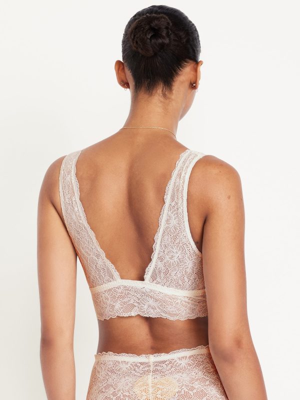 V-Neck Lace Bralette: plunging v-neck, wide straps, front mesh lining, elastic neckline and hem, #800563