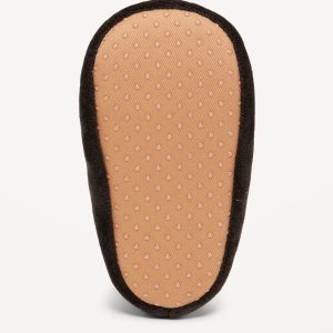 Velour Critter Slippers for Baby: bat features at front, faux-suede outsole, textured gripper dots, cozy cushioned foot bed, #787534