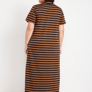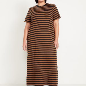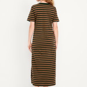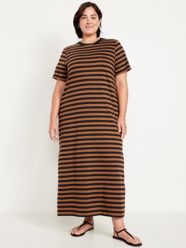 Vintage Crew-Neck Maxi T-Shirt Dress: A super relaxed fit with lived-in feels.rib-knit crew neck, short sleeves, side slits, striped print, #705306