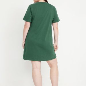 Vintage Crew-Neck Mini T-Shirt Dress: A super relaxed fit with lived-in feels.rib-knit crew neck, short sleeves, striped print, #705238