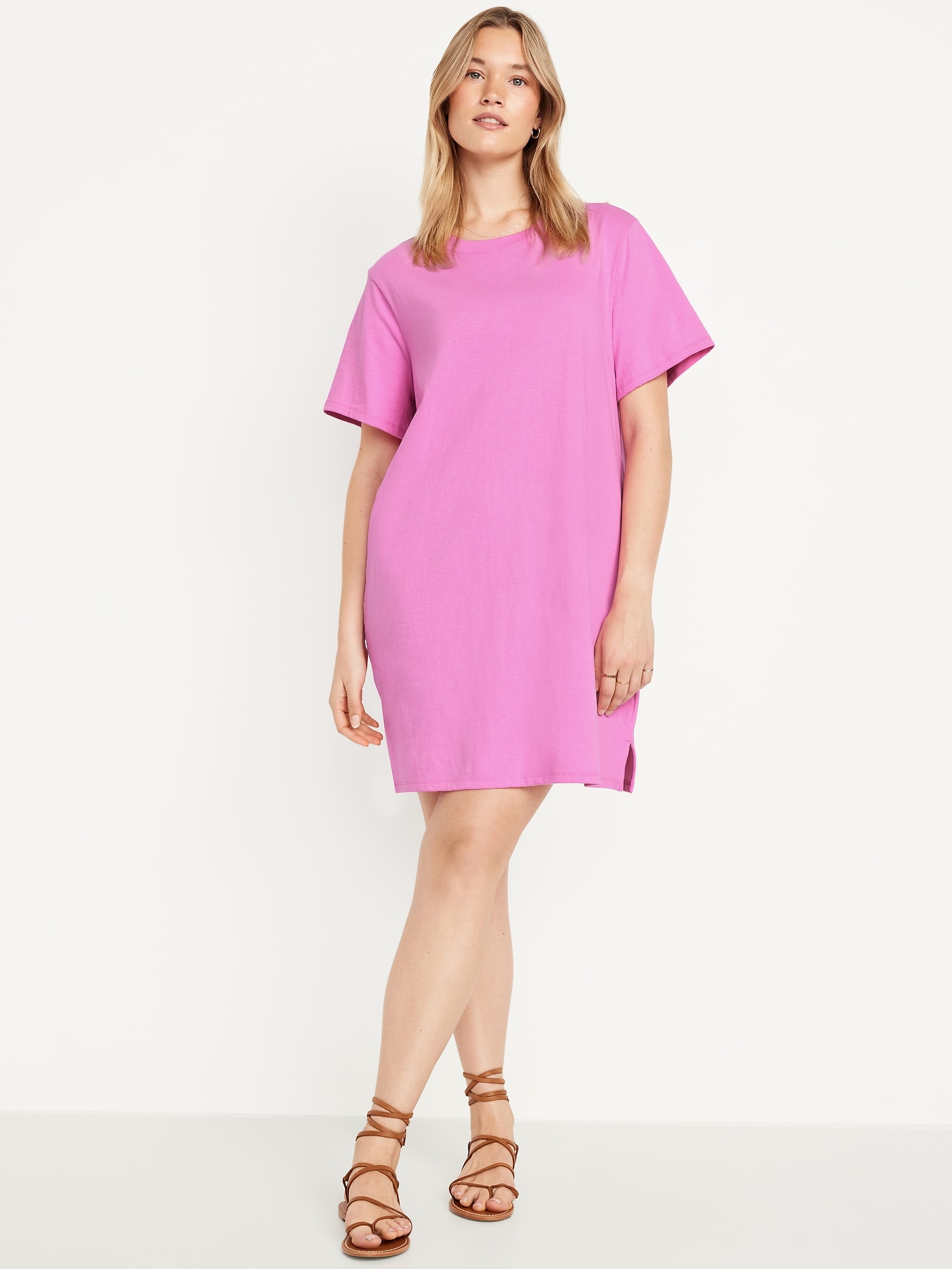 Vintage Crew-Neck Mini T-Shirt Dress: A super relaxed fit with lived-in feels.rib-knit crew neck, short sleeves, #705142