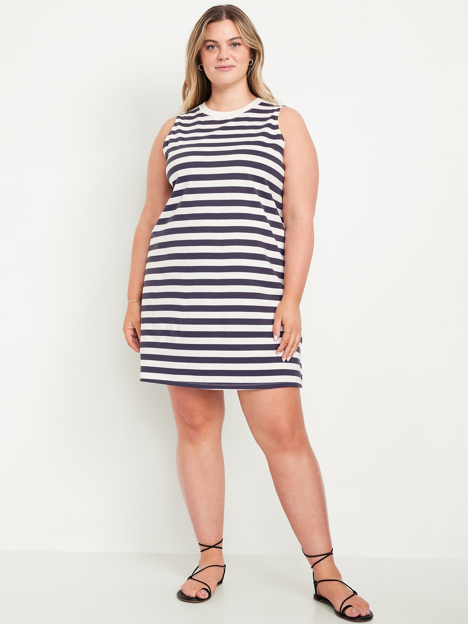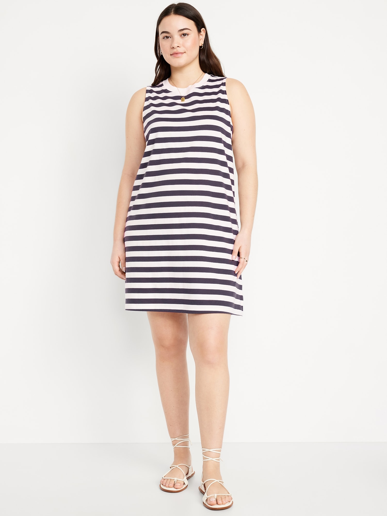 Vintage Sleeveless Mini T-Shirt Dress: A super relaxed fit with lived-in feels.rib-knit crew neck, sleeveless, striped print, a t-shirt? and a dress? yes please!, #705292