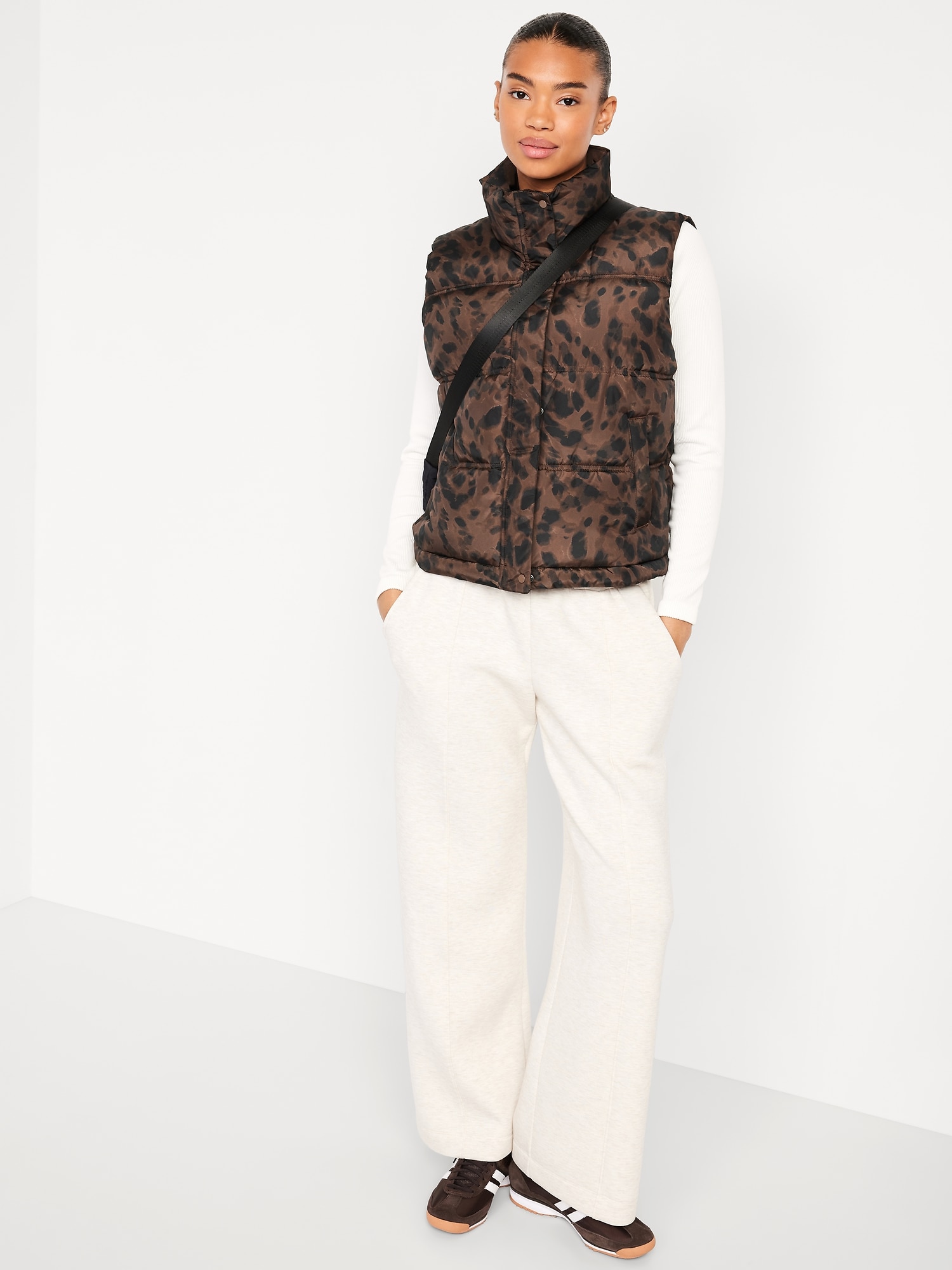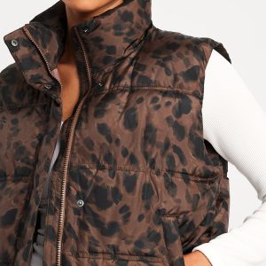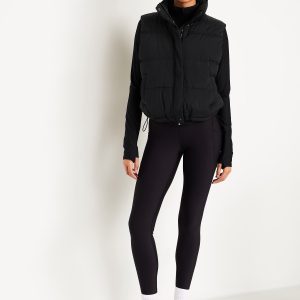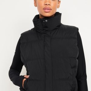 Water-Resistant Puffer Vest: mock neck, snap front with covered zipper, vertical welt pockets, adjustable bungee-cord waist, fully lined, #784467