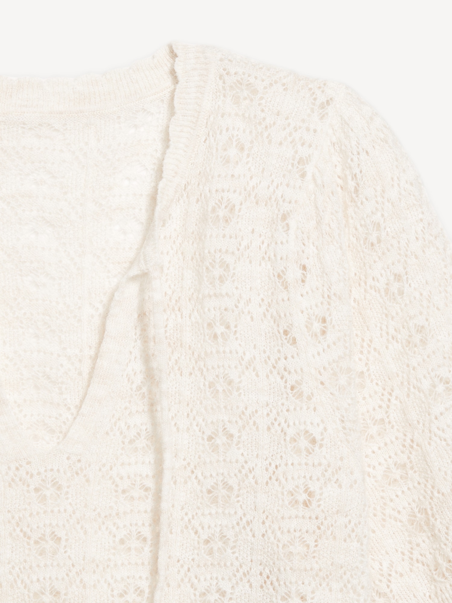 Wool-Blend Puff-Sleeve Tie-Neck Sweater