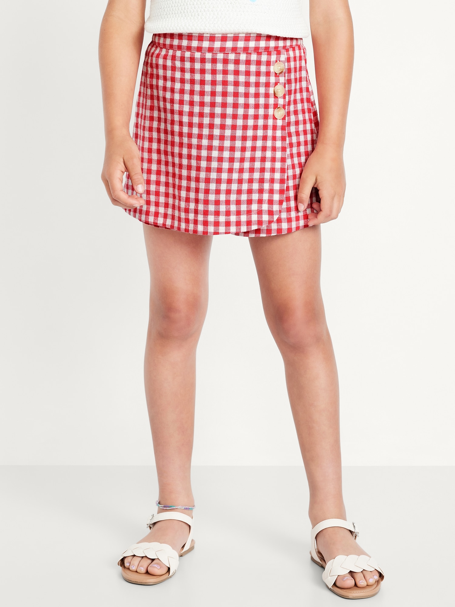 Wrap-Front Linen-Blend Skort for Girls
